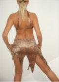 beklebten BH und einem asymmetrischen Rock, der links ganz kurz ist und rechts einen "Zipfel" hat, der in Höhe der Wade endet. Beide