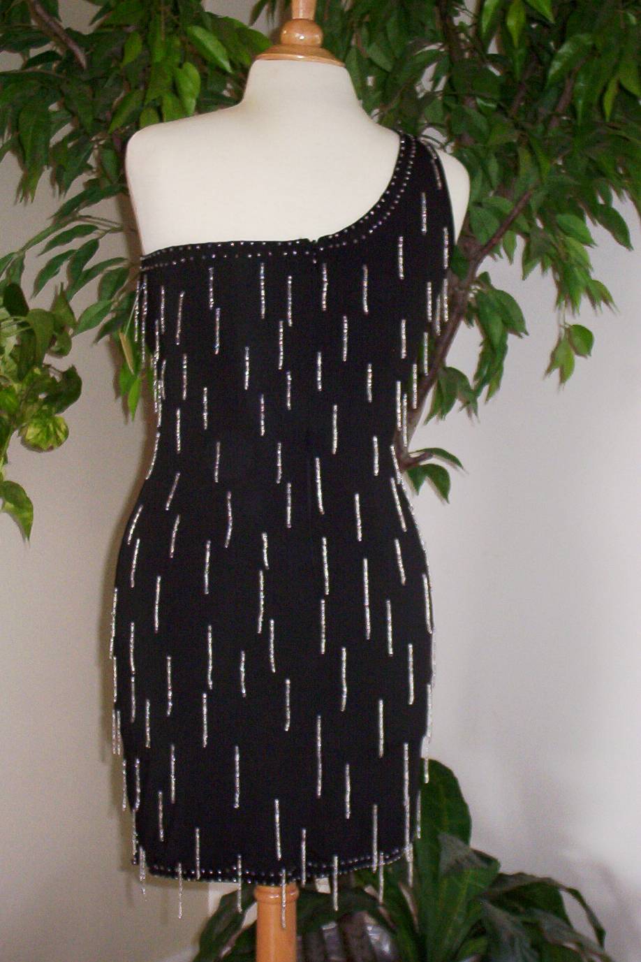 Straßbesatz; asymmetrischer Schnitt (ohne Gürtel); Hängefransen wurden