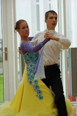 Verkaufe Standardkleid in gelb-blau Größe 36-38 mit viel Strass. Kleid wurde