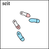 Rechtsdrehung | Außenseitlicher Wechsel | Rechtskreiseldrehung | Linksdrehung | Chassé | Zögerwechsel und Chassé nach Rechts | Impetus | Impetus mit Linksflechte nach 1. Teil Rechtsdrehung, bevorzugt in der Ecke der Tanzfläche ...Rechtskreisel, Zögerwechsel etc.